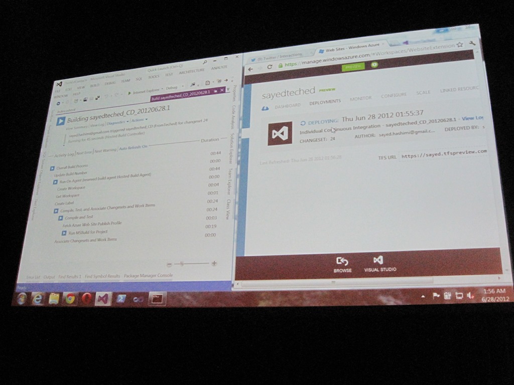 In VS2012 wird der Publish-Vorgang (mit den downgeloadeten settings aus Windows Azure) ausgeführt. Nach dem Publishen wird die Website geöffnet. Bei Code-Aktualisierungen werden nur die Änderungen an Azure gesendet.