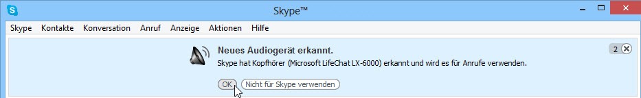 Nun kanns losgehen, wir starten Skype (Download unter www.skype.com/intl/de/get-skype). Skype erkennt netterweise gleich das neue Headset und schlägt vor, es für Anrufe zu verwenden. Na klar!
