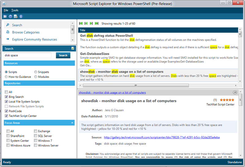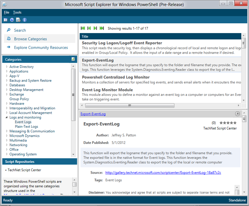 Microsoft Script Explorer durchsucht (bestimmte) Internet-Portale und die lokale Festplatte nach PowerShell Scripts!