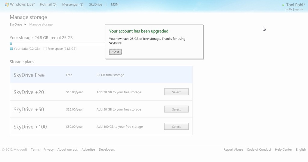 Hier finden Sie ganz oben den Link für die 25GB. Sobald Sie hierauf klicken, können Sie dieses Gratisangebot nutzen und bei Bedarf auch gleich weiteren Speicher erwerben.