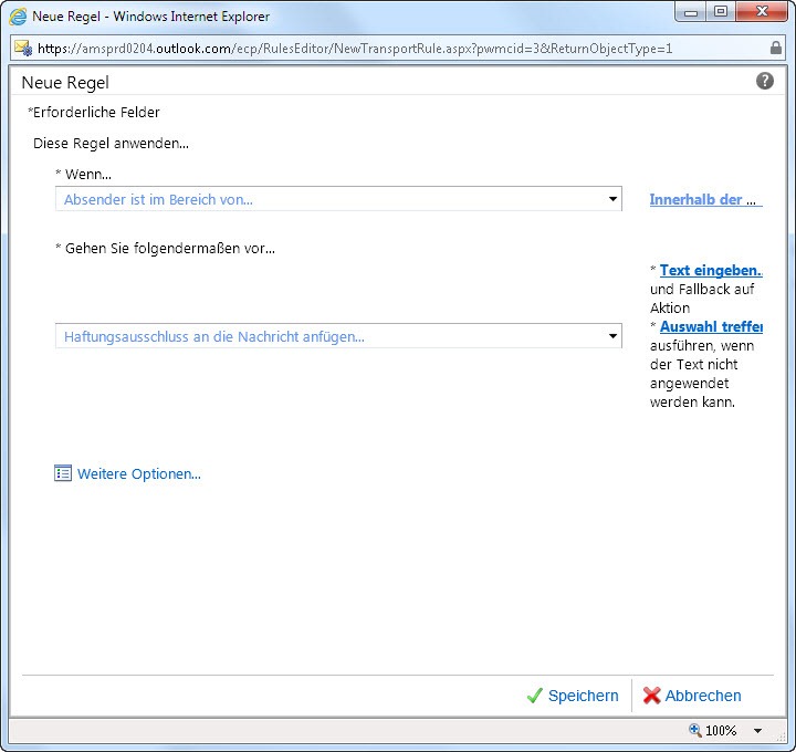 In Exchange Online stehen ja auch verschiedene Regeln zur Verfügung. Diese können auch dazu eingesetzt werden, benutzerspezifische Signaturen zu verwenden. Dies wird gerne eingesetzt, wenn ein Unternehmen eine einheitliche Signatur für alle Benutzer des Unternehmens verwenden möchte.