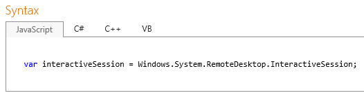 Beim Reinklicken in den Namensraum offenbaren sich seine Classes - und alle weiteren Informationen wie Delegates und Enums - und liefern wie erwartet jeweils ein Beispiel zur Verwendung in Javascript, C++, C# und Visual Basic. Grundsätzlich sind die Funktionen in allen Programmiersprachen vorhanden, es gibt jedoch ein paar Ausnahmen: Dort wo die Verwendung technisch nicht möglich ist oder keinen Sinn macht, zum Beispiel gibt es in der ThreadPool class keine Unterstützung von Javascript, usw. Sonst sieht die zu verwendende Syntax wie hier aus: