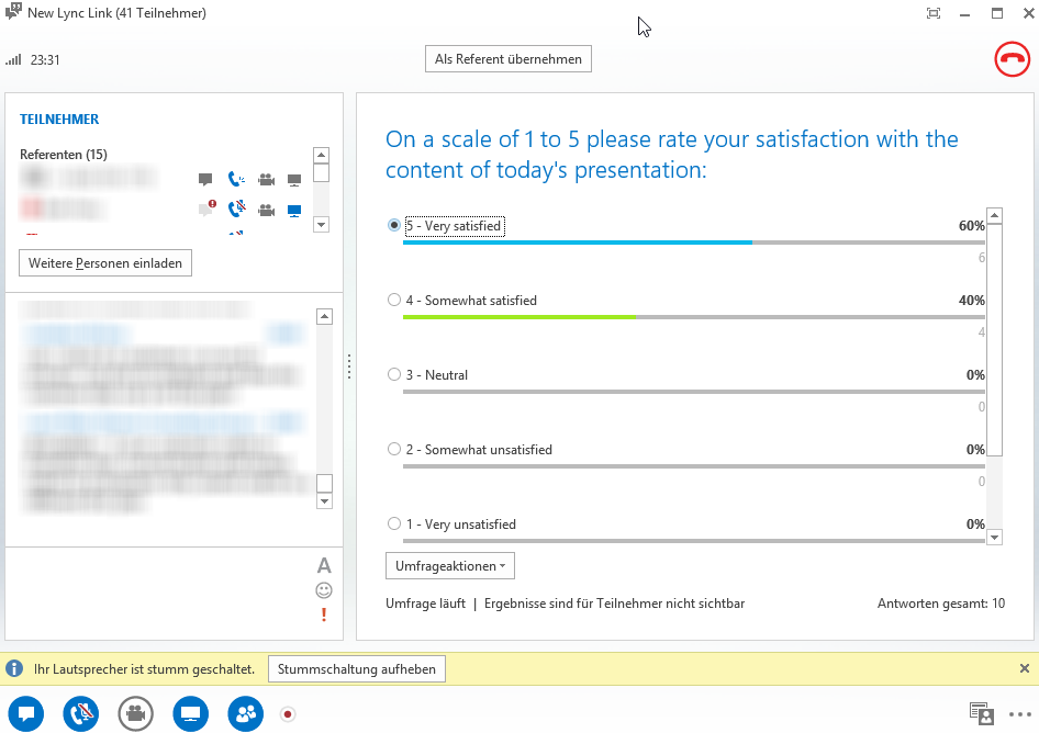 Seit einigen Tagen hatte ich ein Anzeigeproblem bei Webkonferenzen über Lync: das Fenster mit den PowerPoint Folien wurde links oben sehr klein angezeigt und war auch nicht mehr zu vergrößern. Das ist natürlich nicht sehr praktisch, da die Anzeige damit einfach nicht mehr gut möglich war. Über den Lync Web Access hat alles funktioniert.