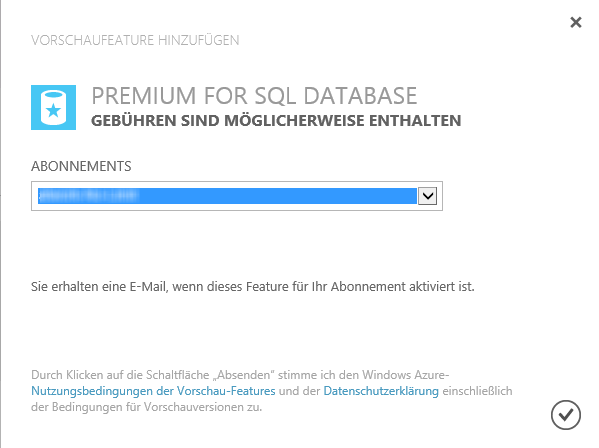 Danach folgt der Status “You are Queued”. Dies kann einige Stunden dauern, es kommt eine E-Mail mit der Aktivierungsinformation. Danach stehen die SQL-Premium-Funktionen im eigenen Windows Azure-Portal bereit.