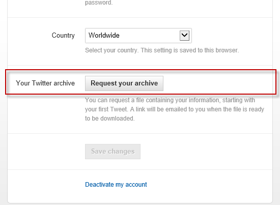 - Sie erhalten eine E-Mail mit einem Link. Das Twitter-Archiv ist fertig.
