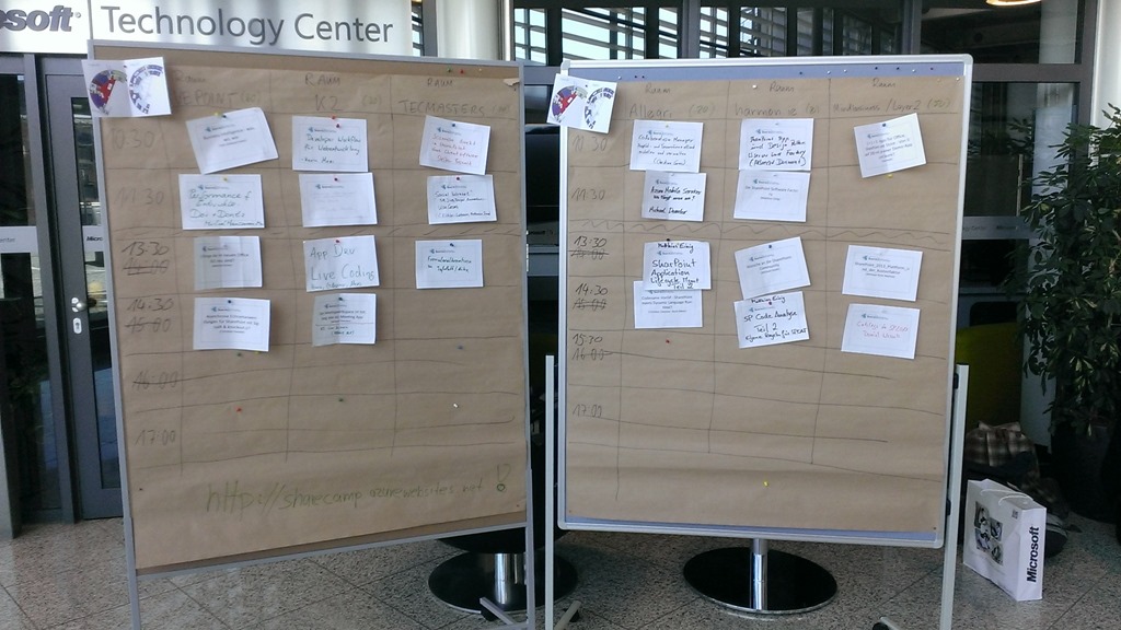 Das Microsoft Headquarter Deutschland in München stellte zwei Tage die Location und gemeinsam mit weiteren Partnern das Sponsoring für das ShareCamp bereit. Das Event war mit fast 200 Teilnehmern restlos ausgebucht. Mit mehr als 50 Sessions war ausreichend viel für alle Geschmäcker dabei, von ALM und BI bis zu SignalR und Wünsche an die SharePoint Community (siehe auch Thorstens Session-Katalog). Dieses Jahr war das Angebot an Sessions riesig.