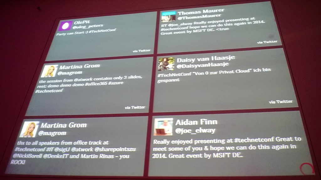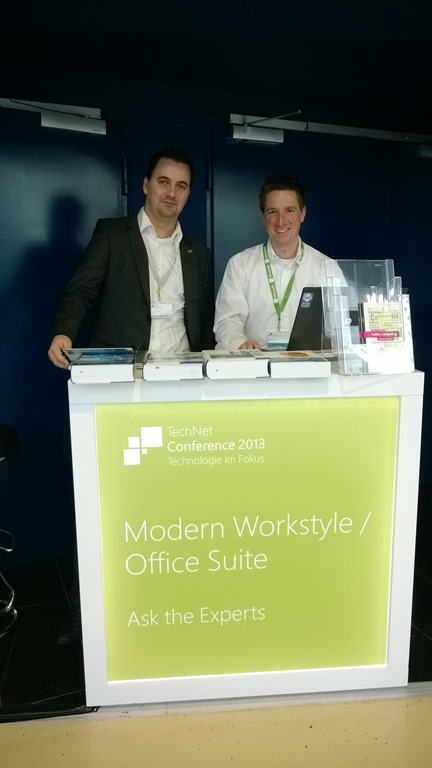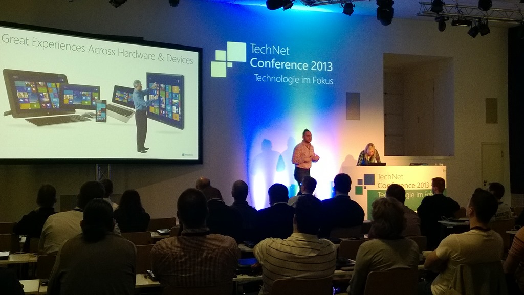 Letzte Woche fand die TechNet Conference 2013 in Berlin statt. In 40 Sessions und drei Tracks konnten sich Teilnehmer über die Neuerungen der Microsoft Cloud OS (Track 1), über New Era / Client Deployment & Co IT (Track 2) und Modern Workstyle / Office Suite (Track 3) informieren, siehe Konferenz-Agenda.