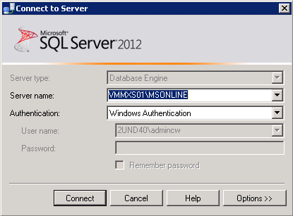 In der lokalen SQL Instanz genannt „MSONLINE“ gibt es eine Datenbank auf die der Serviceaccount als DBO definiert werden muss. Leider ist per Default kein SQL Management Studio installiert. Das SQL Management Studio Express (Free!) kann unter folgendem Link heruntergeladen werden: