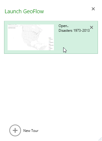 Alternativ können die Daten auch in einer animierten Tour “Play Tour” angezeigt werden. Hierbei wird die Zeitachse durchlaufen und visualisiert. Die Timeline kann unten ein- und ausgeblendet werden, ebenso kann in der TaskPane der darzustellende Zeitraum ausgewählt und die Geschwindigkeit angepasst werden. Auch hier gibt es einen Haufen Einstellungsmöglichkeiten.