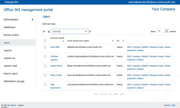 The business administrators can manage their own users and create their own global distribution lists as well. So Delegate365 simplifies all this tasks and works as new standard portal with advanced management features.