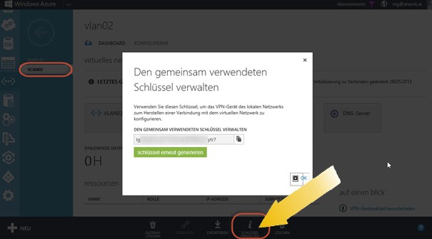 Um die VPN-Verbindung zu ermöglichen muss man einen Gateway im Windows Azure erstellen. Dies geschieht unter Virtuelle Netzwerke -> Gerade erstelltes virtuelles Netzwerk auswählen -> Dashboard und in der Aktionsleiste auf Gateway erstellen. Hier gibt es zwei Möglichkeiten – „statisches" und „dynamisches" Routing. Für die meisten Gegenstellen wählen wir hier „statisch" aus. Jedoch ist statisches Routing für RRAS im Moment nicht supported also sollte es sich also um RRAS handeln, bitte „dynamisch" auswählen.