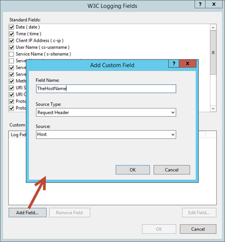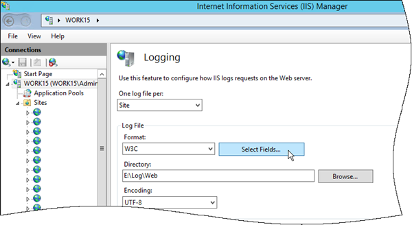 Neu in IIS 8.5 ist, dass hier mit *Select Fields… *sog. *Custom Fields *hinzugefügt werden können.