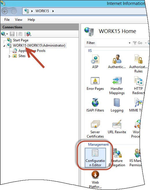 Dazu öffnen Sie im IIS im Knoten des Webservers den Configuration Editor.