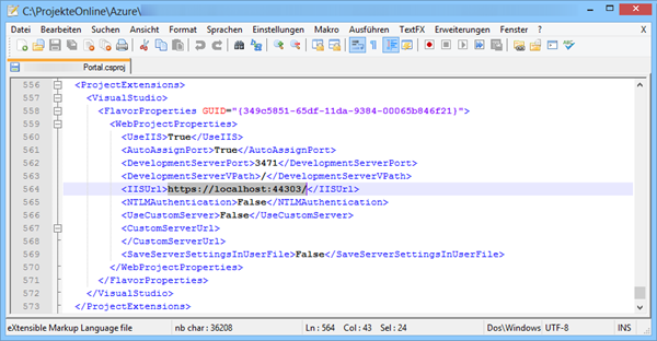 Und natürlich kann auch die .csproj Datei direkt bearbeitet werden, wo die Projekt-Adressen gespeichert sind: