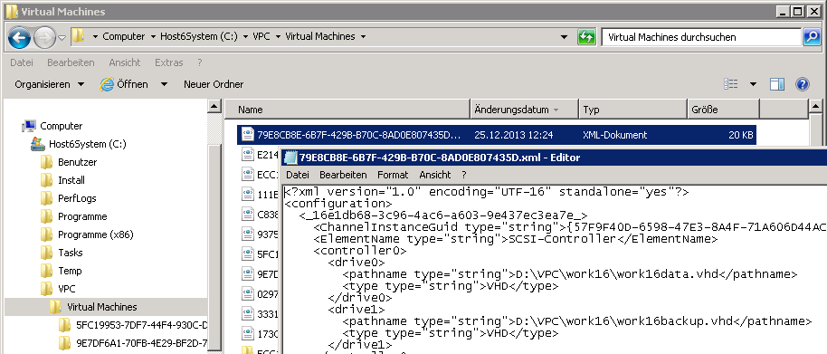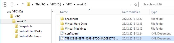 Once you´re sure it´s the right file, copy the file (here “79E8CB8E-6B7F-429B-B70C-8AD0E807435D.xml”) to the new Hyper-V 2012 machine. I copied it to the same directory of the exported VM.
