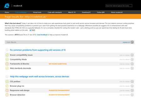 modern.IE hilft somit Webseiten zu optimieren und auf Modernität und Kompatibilität zu testen.