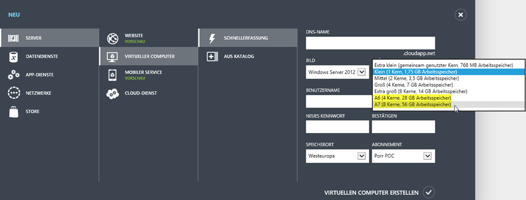 Es sind einige neue Funktionen für Netzwerk, neue VM-Images und neue Konfigurationen mit größerem RAM-Speicher hinzugekommen. Auch die VM-Preise wurden angepasst und zwar wurden diese zwischen 21% bis 33% für IaaS und PaaS VMs reduziert!
