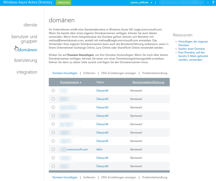 Office 365 goes Windows Azure Active Directory. Seit kurzem ist die Domainvalidierung etwas anders gestaltet als bisher: über eine Assistentensteuerung werden Domains hinzugefügt und danach validiert. Mein MVP Kollege Loryan Strant hat darüber bereits berichtet: Changes to Domain Management und Previous ways to access….