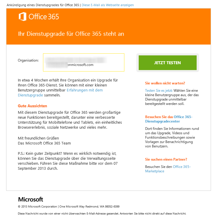 Von der Aktualisierung betroffen ist in erster Linie Exchange Online und das Managementportal. Lync Online und SharePoint Online betrifft dies aber nicht.