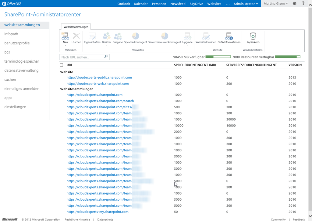 SharePoint ist zwar schon sehr lange von der Datenbank auf SharePoint 2013 vorbereitet, die entsprechenden Updatelinks stehen jedoch noch nicht zur Verfügung. Ebenso verhält es sich bei der My-Site, dem Newsfeed und Skydrive Pro: hier müssen die Benutzer auf die Aktualisierung warten, die aber innerhalb von 4 Wochen nach der ersten E-Mail Notifikation automatisch passiert.