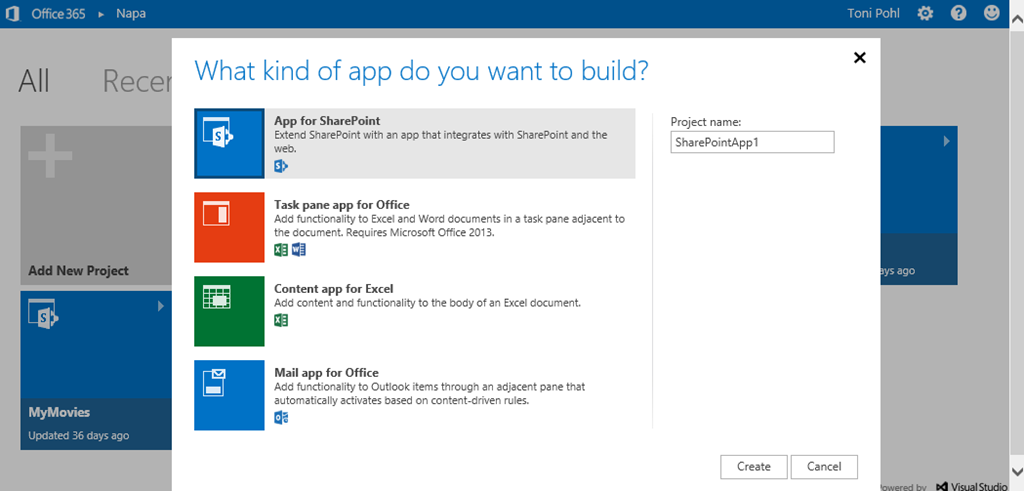 Napa steht für eine webbasierte IDE zur Erstellung von Office und SharePoint Apps und kann im SharePoint App Store bezogen werden.