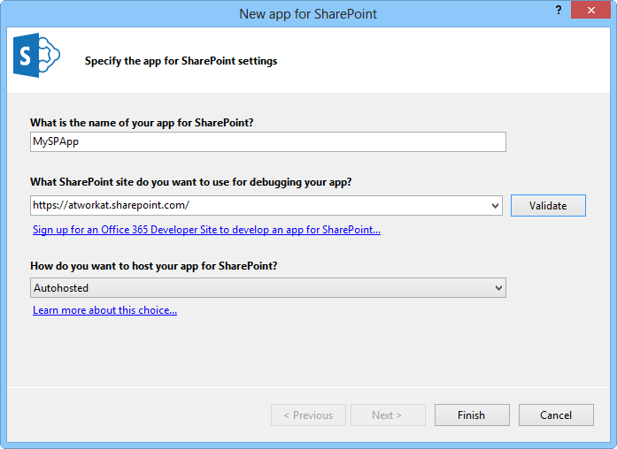 Im Assistenten verwenden wir AutoHosted (siehe OfficeApps entwickeln–Teil 1 Die Grundlagen).