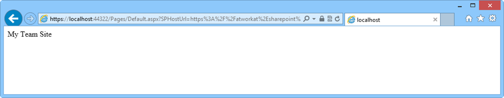 Interessant dabei sind zwei Aspekte: Die URL lautet localhost (cool – debuggen funktioniert!) und es wir ein Haufen URL-Parameter mitgegeben. Diese werden in der App benötigt. Die Parameter werden zur Laufzeit durch Standard-Token von SharePoint ersetzt - der Platzhalter {StandardTokens} -, die sicherstellen, dass der Kontext valide ist und eine Kommunikation zwischen App und SP möglich ist. URL strings and tokens in apps for SharePoint informiert über die möglichen URL-Parameter.