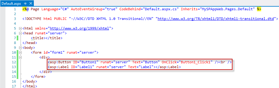Die ASPX-Seite sieht nun so aus: