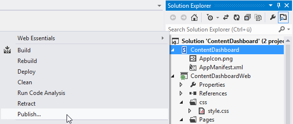Um eine App mit Visual Studio 2012 vorzubereiten, wird das Projekt einfach ge-publisht:
