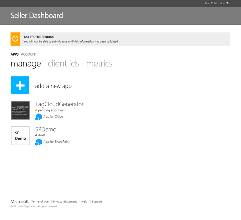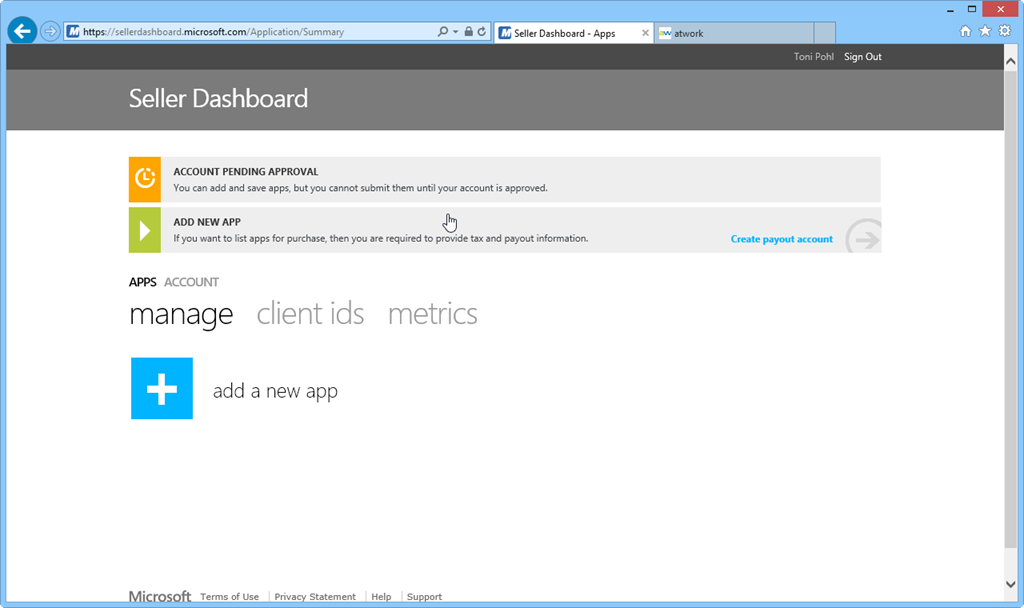 Wenn die Freischaltung erfolgt ist (man erhält eine E-Mail von sellerdashboard@microsoftonline.com), können Apps zur Genehmigung eingereicht werden – jedoch noch nur Gratis-Apps.