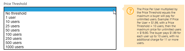 Mit dem Price Treshold kann ein Preis ab n Benutzern definiert werden, so zum Beispiel eine App um 1.49 $ bis 10 User, ab dem 11. User kostet die App nichts mehr (somit kostet die unlimitierte App 10 - 1.49 $ = 14.90 $).