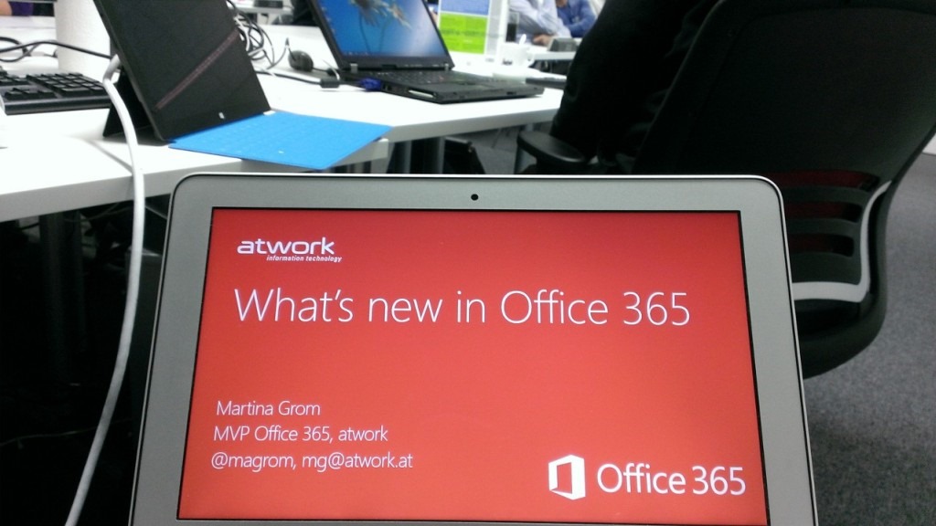 Georg Binder von Microsoft zeigte Windows 8 und Windows 8 Funktionen für das Unternehmen, Martina Grom von atwork präsentierte die Neuerungen von Office 365 und verloste am Ende unser Windows 8 Pro Buch.