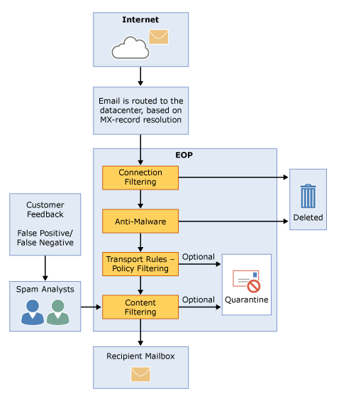 Exchange Online Protection ist das Antispam- und Antivirenservice von Microsoft, welches auch viele Kunden mit ihren On-Premises Exchange Servern verwenden. Das hat viele Vorteile, garantiert Exchange Online Protection (EOP, vormals FOPE, vormals EHS) ja 100% Mailvirenschutz und 98% Spamschutz. Lange Jahre begleitet mich dieses Produkt nun schon und egal wie es gerade heißt, es ist einfach immer noch sehr sehr gut.
