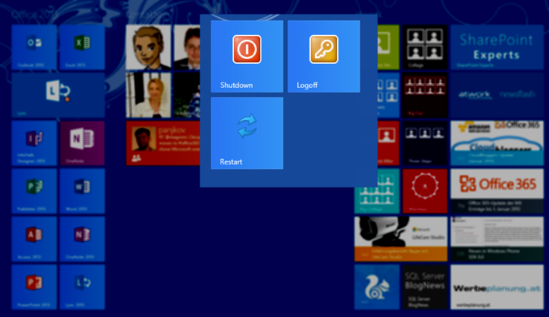 Mit Hilfe eines PowerShell Scripts können Sie nun eine Herunterfahren / Neustarten / Abmelden Kachel auf Ihre neue Benutzeroberfläche zaubern.