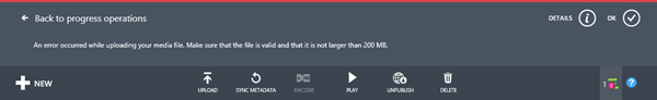 Wenn Video-Dateien mit mehr als 200MB in das Azure Portal upgeloadet werden sollen, verweigert dies das Portal. Sie erhalten eine Fehlermeldung wie hier: