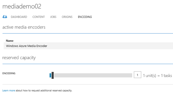Normalerweise kann ein Media Services Account bis zu 25 Encoding und 5 On-Demand Streaming Reserved Units enthalten. Für mehr Leistung kann ein Support Ticket geöffnet werden.