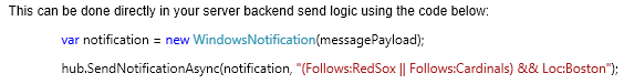 Notification Hubs: sind ein Mobile Push Notifications service und seit August verfügbar. Nun gibt es eine “Segmented customer push notification” nach eigenen Tag-Ausdrücken, zum Beispiel um nur bestimmte Subscriber zu informieren.