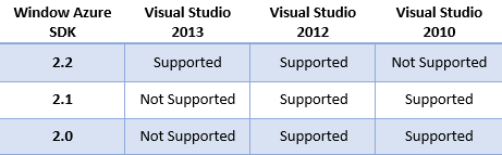 SDK 2.2 läuft auch parallel zu SDK 2.0 und SDK 2.1 und Visual Studio 2012. VS 2010 wird nicht mehr unterstützt. ScottGu hat hierzu eine Grafik veröffentlicht: