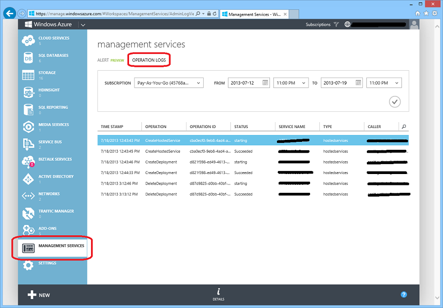 Management Services sind seit kurzem als eigenes Modul im Azure-Portal verfügbar. Hier werden Operation Logs und Alerts gesammelt und sind an einer Stelle sichtbar. Das sieht zum Beispiel so aus:
