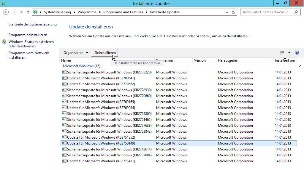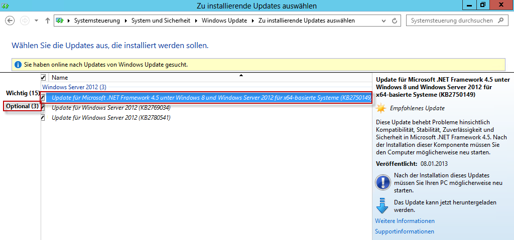 Zum Glück ist der Grund dafür relativ leicht auffindbar. Ursache ist ein optionaler Patch KB2750149 (siehe https://support.microsoft.com/kb/2750149/en-us - An update is available for the .NET Framework 4.5 in Windows 8, Windows RT and Windows Server 2012). Der Patch wird als optionales Update geliefert, und zwar ganz aktuell per 08.01.2013.
