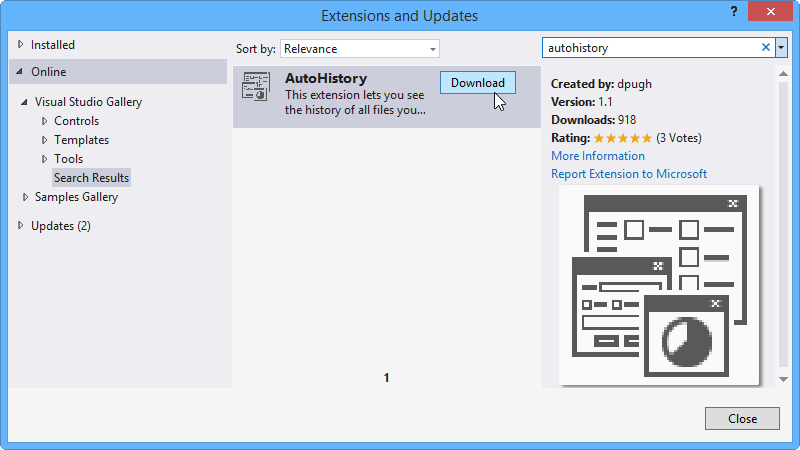 Alternativ kann die AutoHistory Extension auch von der Visual Studio Gallery geladen werden.