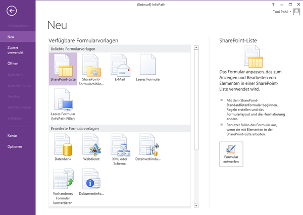 Parallel dazu wird Microsoft eine Migration anbieten, wo bestehende InfoPath-Lösungen in die “neue Technologie” übernommen werden können.