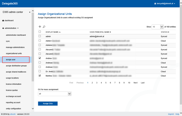 After the assignment these users show up immediately in the OU-Admin´s users list (if their domain also corresponds to the ones of the OU-Admin).