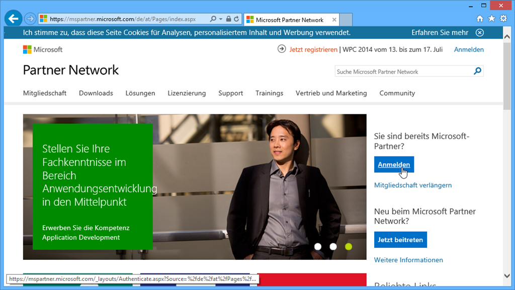 Weiter im Partner Membership Center (bzw. Direkteinstieg direkt über diesen Link):