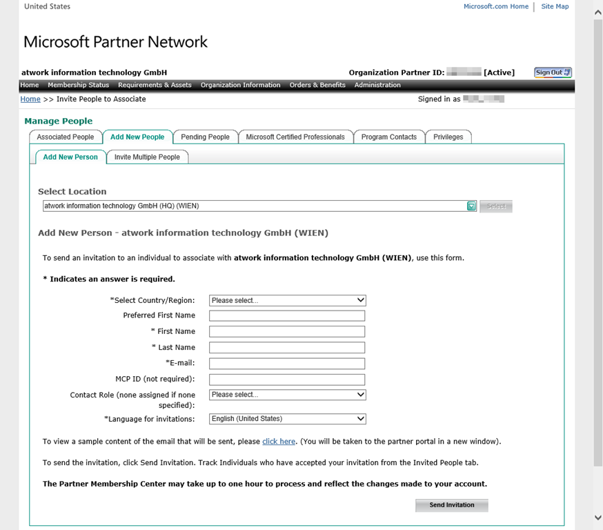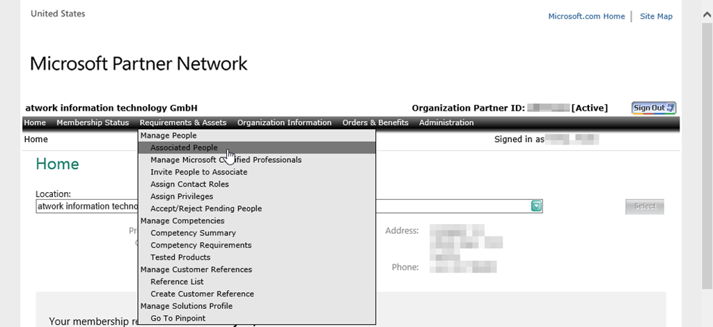 Begonnen wird im Microsoft Partner Network (MPN) https://partner.microsoft.com/ mit Auswahl des eigenen Landes und Anmeldung mit dem Partner (Verwalter-) Konto.