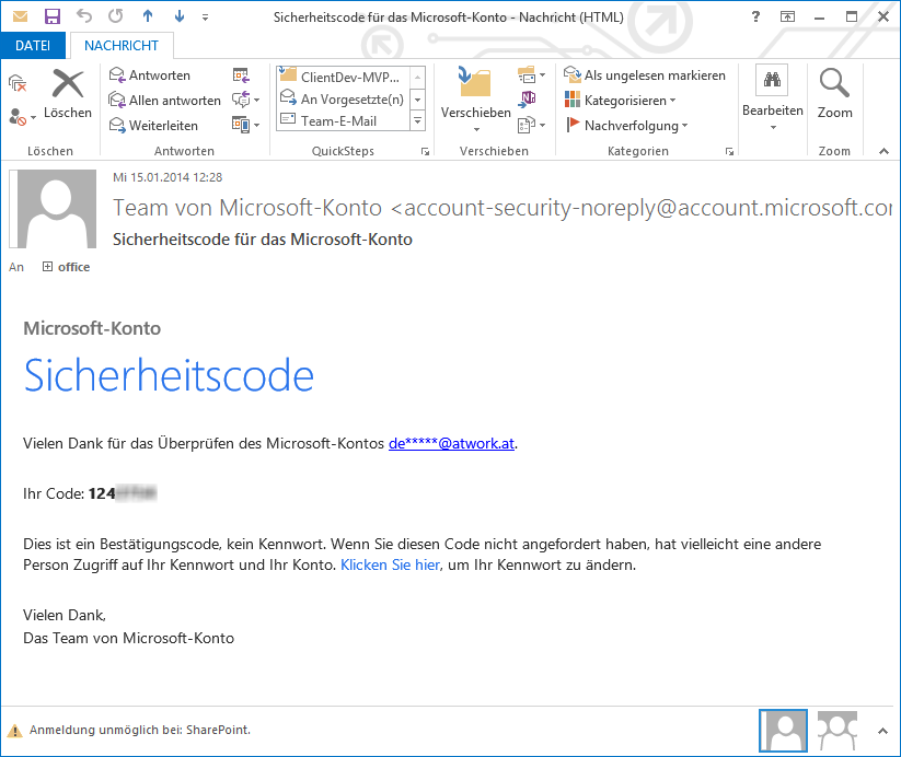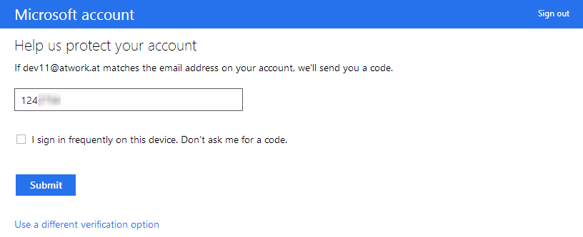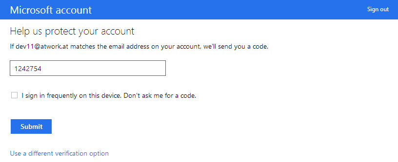 After the login, Microsoft wants an extra code. If you cannot receive the code (because you don´t get an email, you have no access to the mailbox, there is no mailbox or whatever reason can happen…), you´ve a problem.