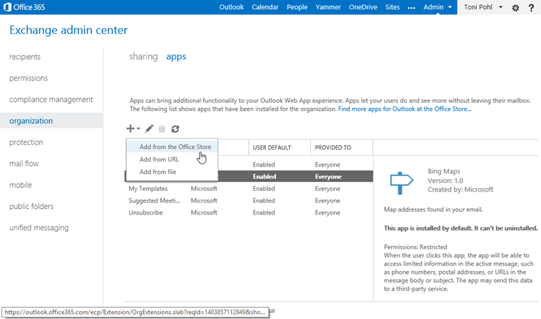 Now change back to your exchange admin “apps” page and refresh the page (F5).