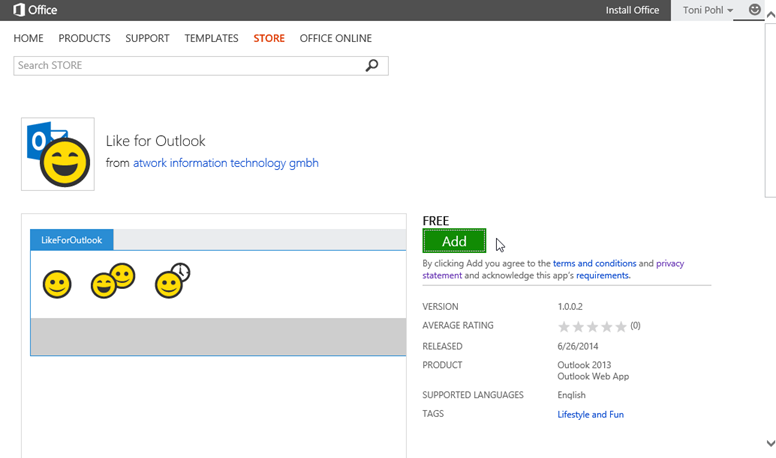 Update 26.01.2015: The App URL in the Microsoft Office App-Store was changed. So the old link in this article was replaced by this new URL pointing to the app: https://bit.ly/LikeForOutlook