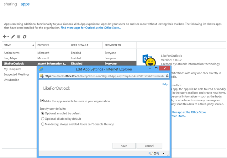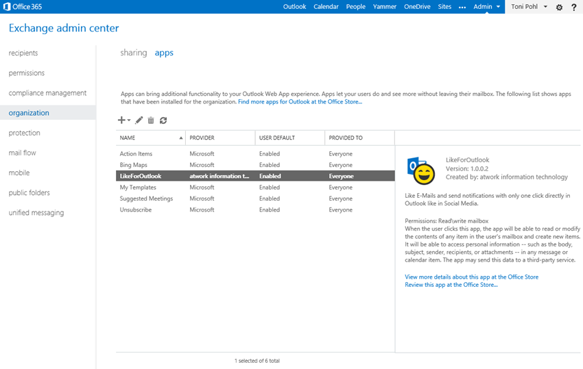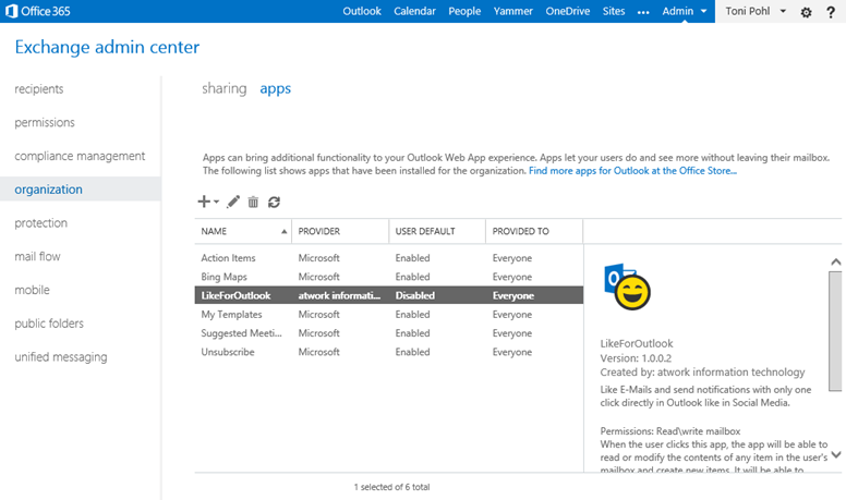 Since we put our App “Like for Outlook” in the Microsoft Office Store recently here´s some information how to install Apps for Outlook as an IT-administrator.