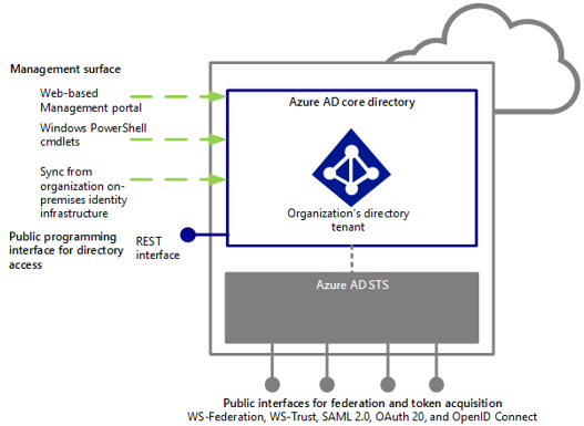 AAD ist eine skalierbare Infrastruktur, die Speicherplatz, Datenzugriff, Replikation, Synchronisation, Geräte-Registrierung und Security Token Services (STS) bietet. Das Core Directory Service wird in Directory Contexts unterteilt.